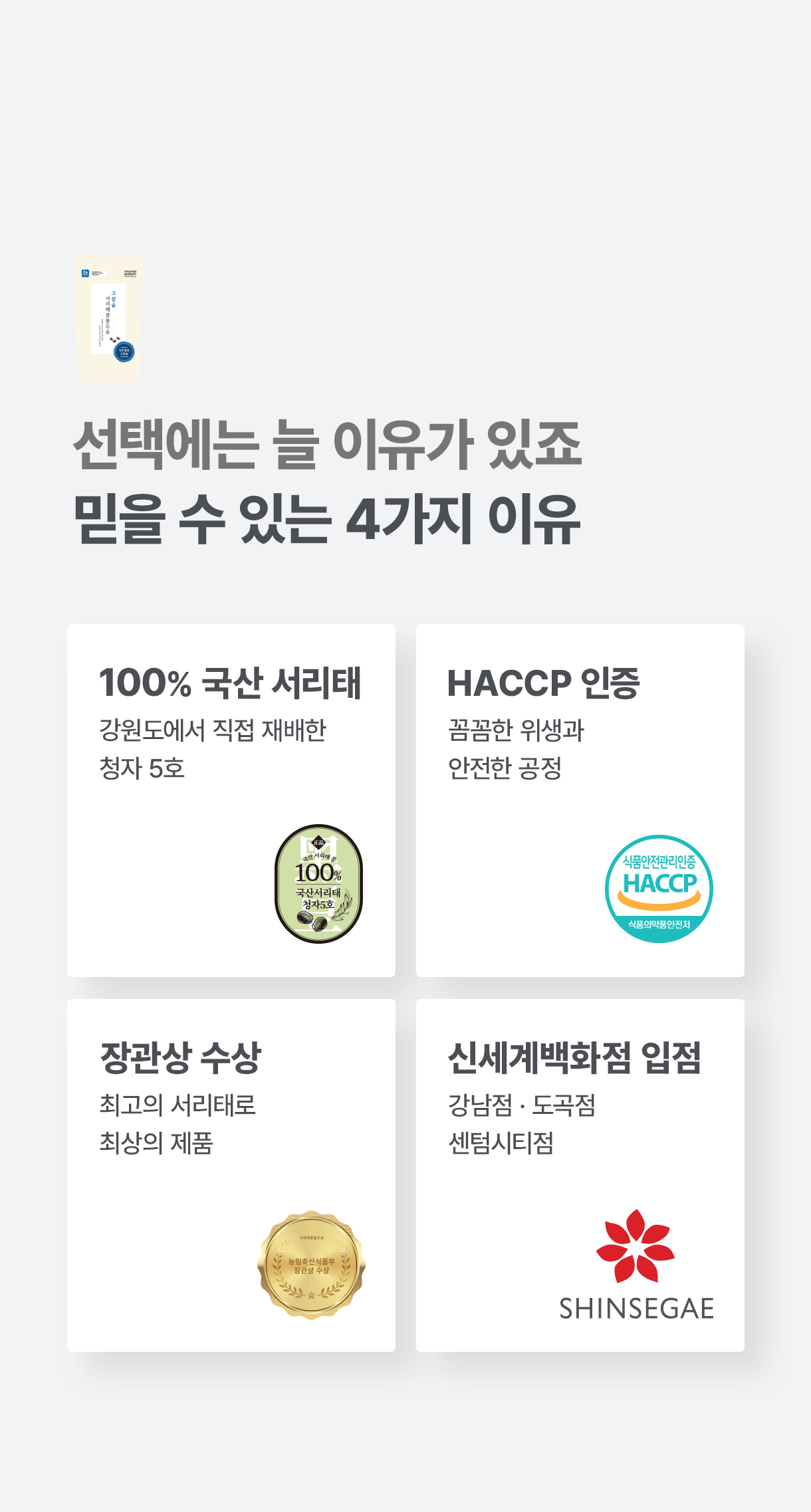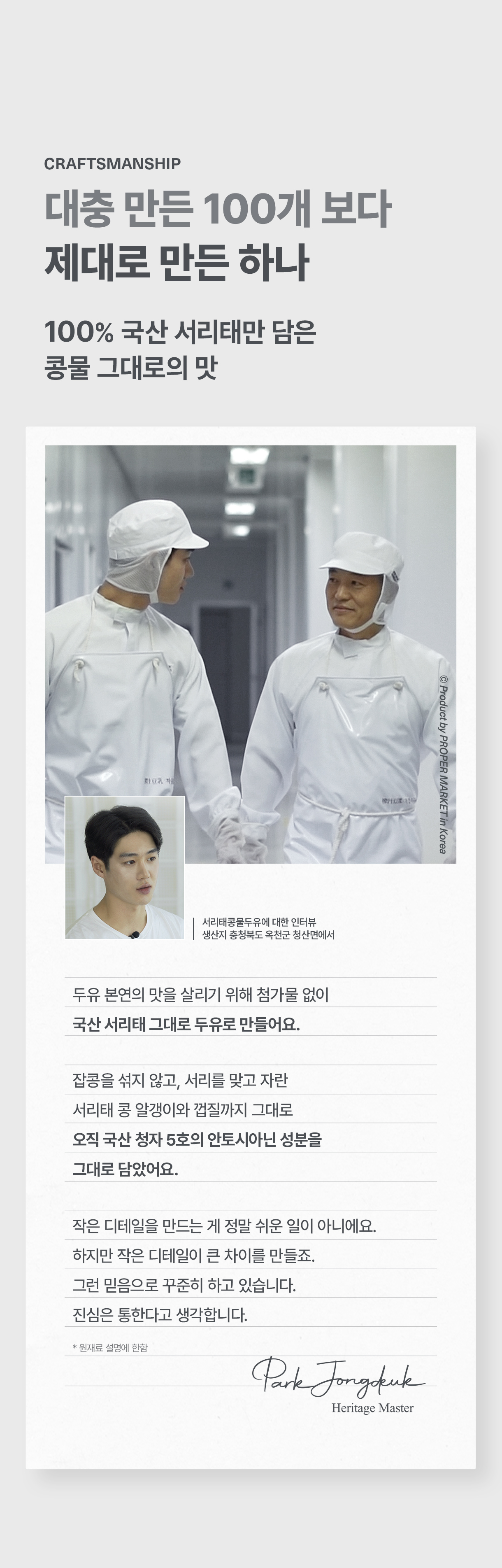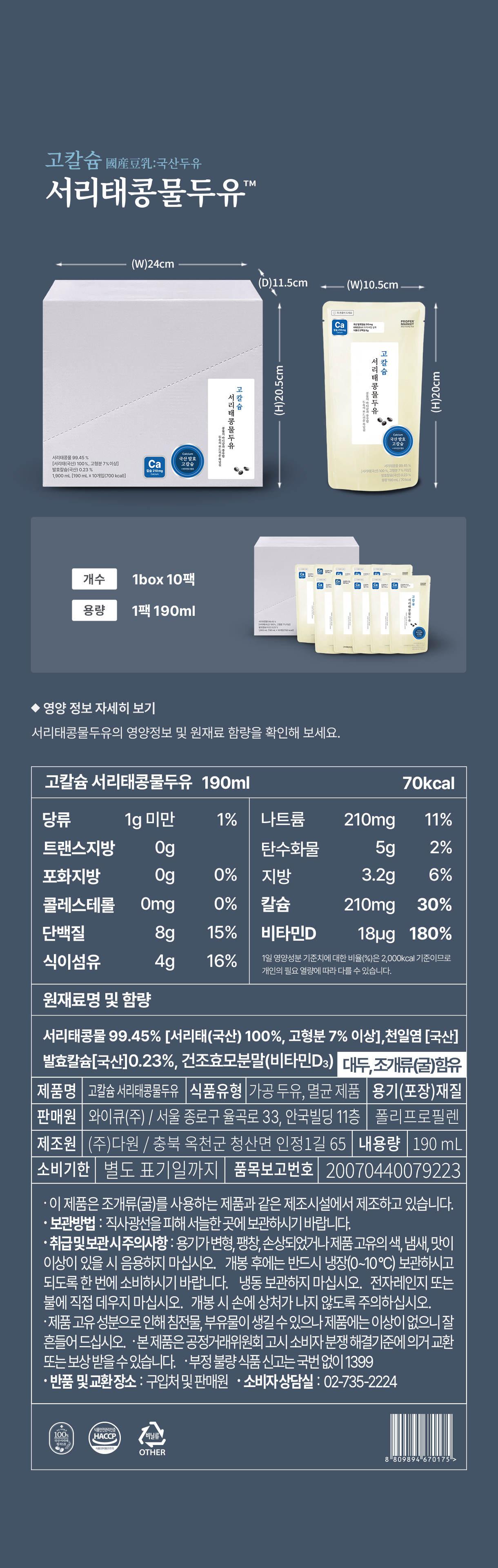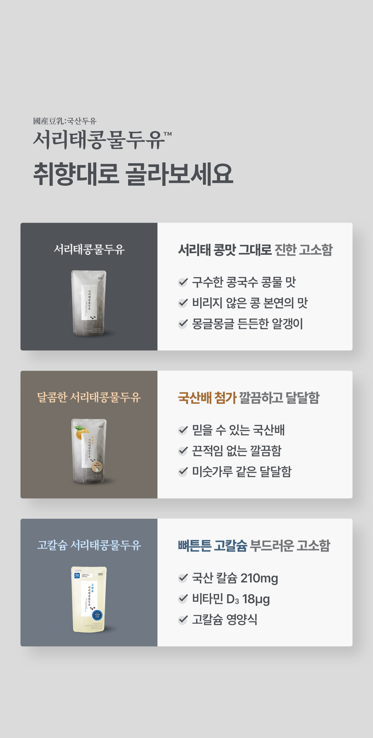 콩물의 질감과 영양소를 그대로 살리고 두유처럼 편하게 마실 수 있도록 만들었습니다다.