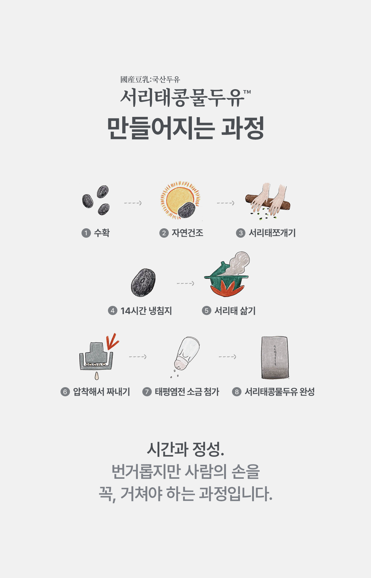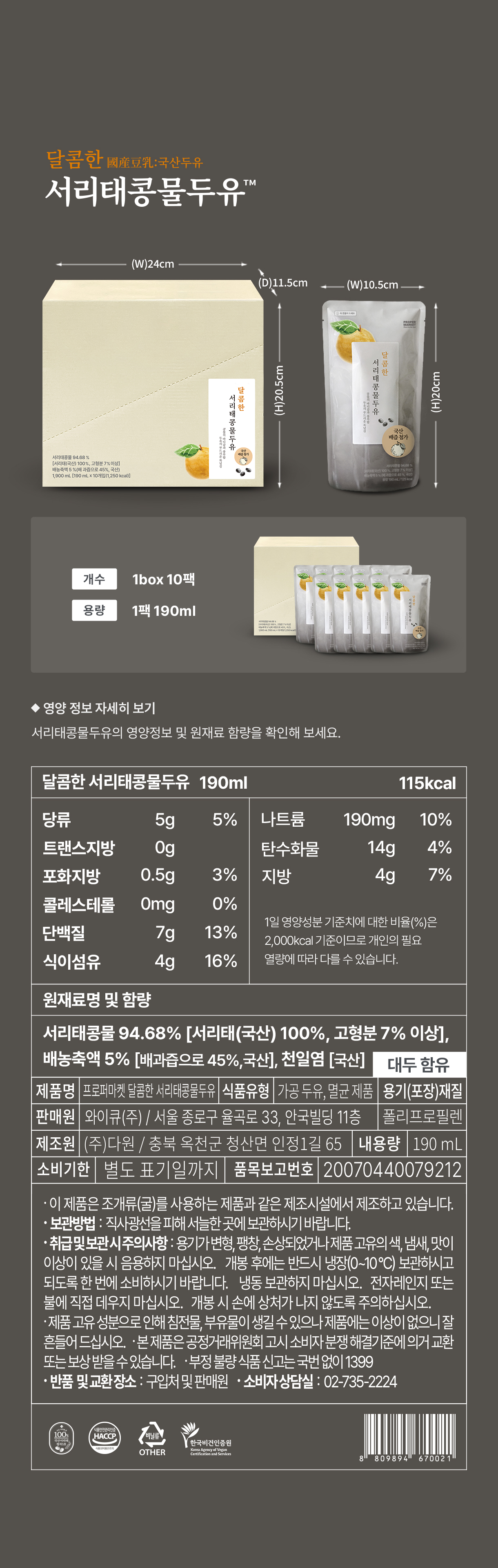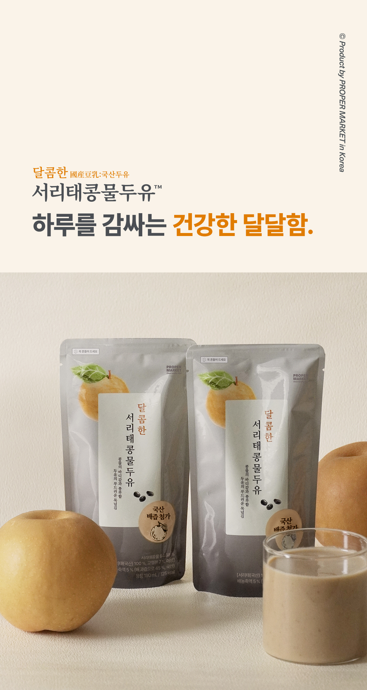 콩물의 질감과 영양소를 그대로 살리고 두유처럼 편하게 마실 수 있도록 만들었습니다다.