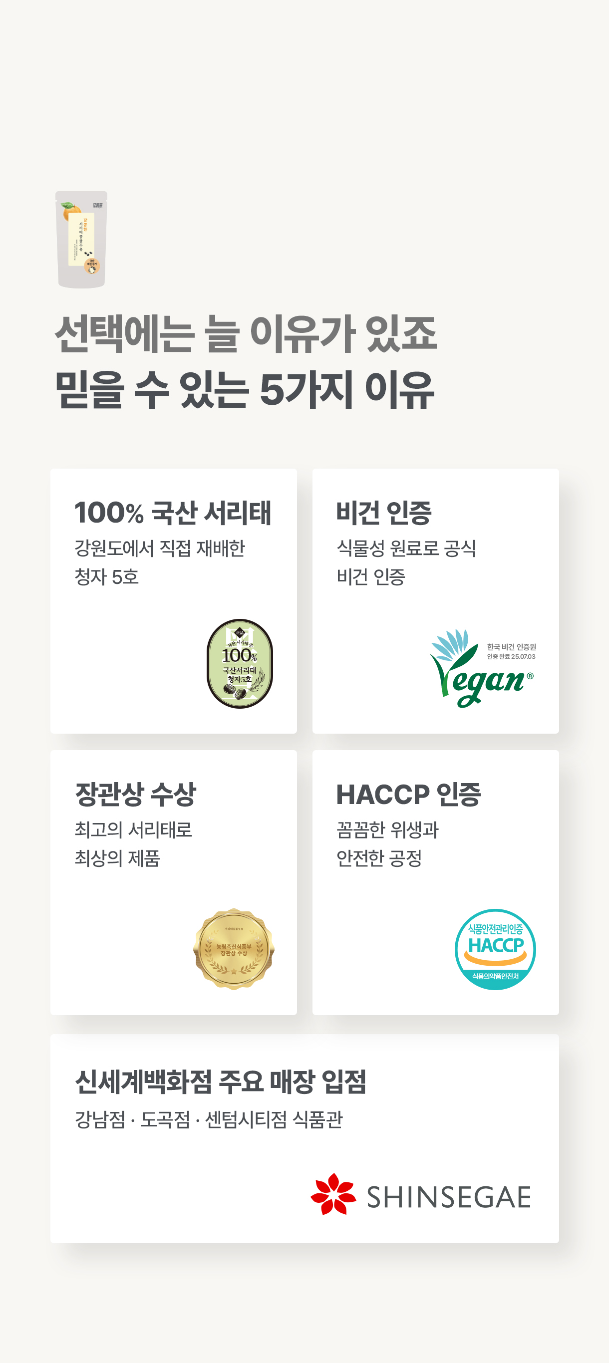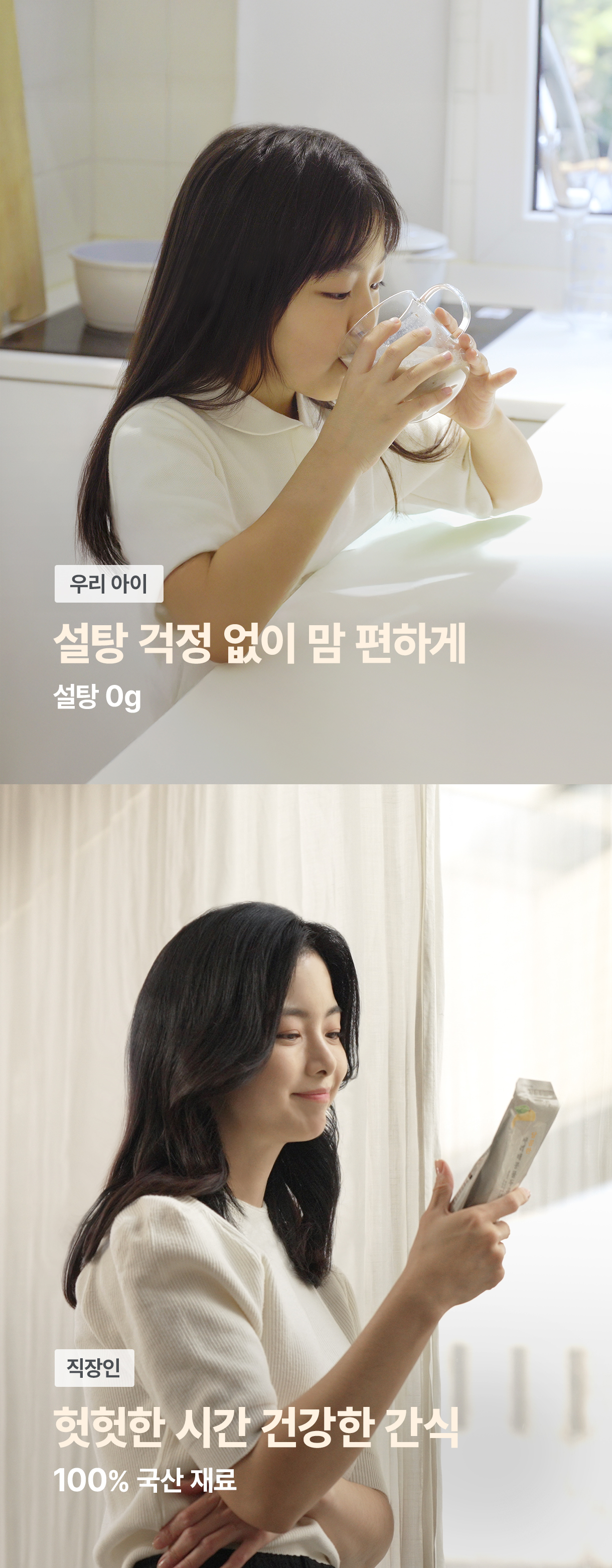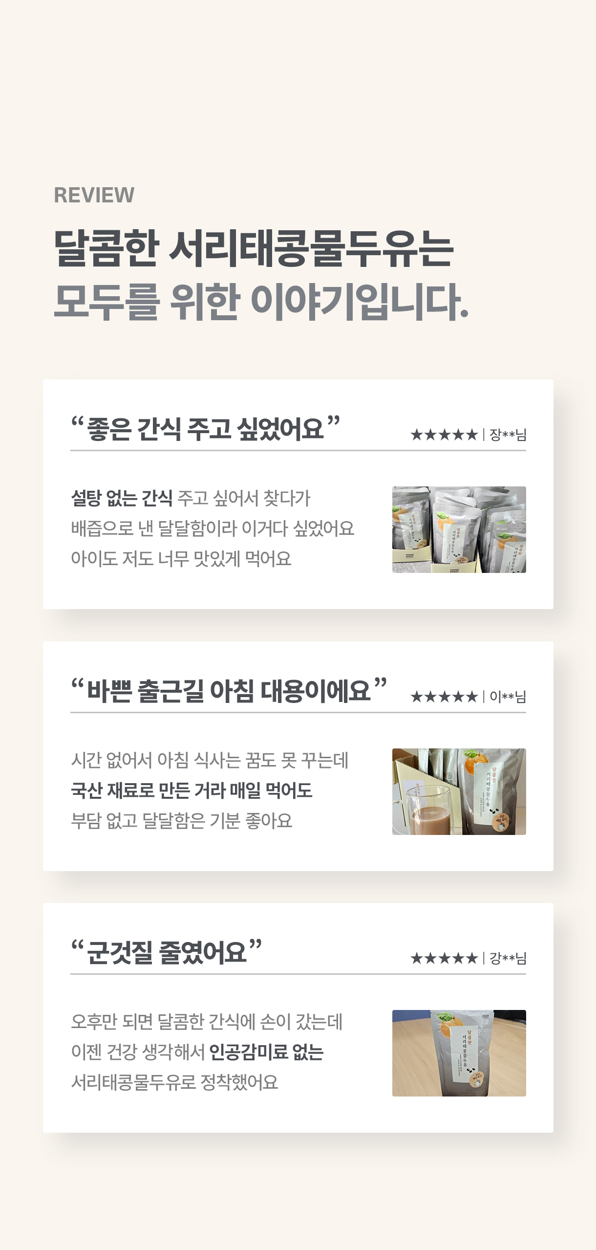 콩물의 질감과 영양소를 그대로 살리고 두유처럼 편하게 마실 수 있도록 만들었습니다다.